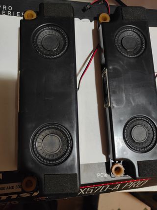 Juego de altavoces para TV TCL modelo 55T8C, incluye subwoofer. - Altavoz principal con diafragma. - Dos altavoces secundarios. - Subwoofer integrado. TOTALMENTE A ESTRENAR NUEVOS SIN USO