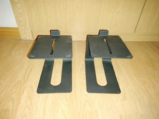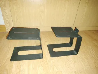 Par de soportes para altavoces. - Diseño moderno y robusto. - Fabricados en metal resistente. - Medidas: Alto 15 cms, Ancho 13 cms, fondo 19,5 cms