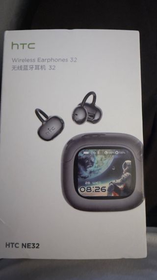 Auriculares inalámbricos HTC modelo NE32 con un diseño moderno y pantalla. - Auriculares inalámbricos. - Incluye estuche de carga con pantalla. - Modelo NE32.
