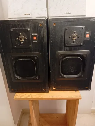 Pareja de altavoces Sony. Con los evidentes signo de desgaste en los recintos y el cono . Dicho esto el altavoz no se ve afectado en su sonido, siendo soberbio y limpio sin ápice de distorsión. Una ganga por el precio que cualquiera manitas y conocwdorndel hifi sabe apreciar. - Modelo APM 12ES. - Color negro.