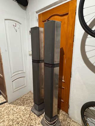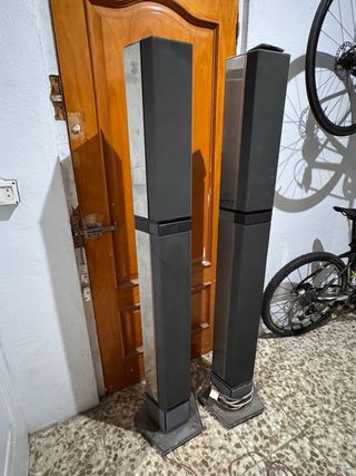 Conjunto de altavoces tipo torre de la marca Sony. - Diseño vertical y estilizado. - Acabado en color plata.
