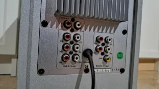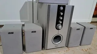 Sistema de altavoces Airis 5.1 para DVD, CD y TV, en buen estado. El conjunto incluye un subwoofer principal con controles, altavoz central para voz y cuatro altavoces satélite. - Diseño moderno en color plata y negro. - Incluye todo el cableado. - Conectores RCA. - Ideal para mejorar la experiencia de sonido en casa. Se vende completo. Hago envíos.