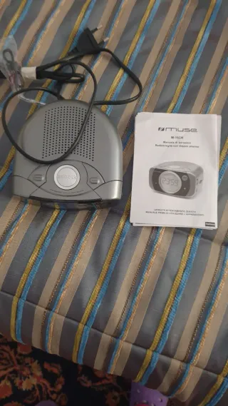 Radio despertador de la marca Muse, modelo M-160CR. Incluye manual de instrucciones. - Diseño moderno en color gris y plateado. - Radio FM/AM. - Doble alarma programable.
