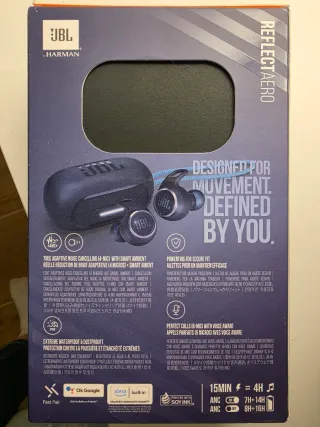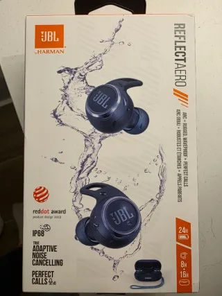Auriculares inalámbricos JBL Reflect Aero con cancelación de ruido adaptativa. - Certificación IP68 para resistencia al agua y al polvo. - True Adaptive Noise Cancelling. - Perfect Calls con 6 micrófonos. - Hasta 24 horas de autonomía total con el estuche de carga.