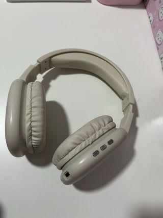 Auriculares inalámbricos de diadema en color beige. Son ligeros y cómodos de llevar. - Bluetooth - Diseño ligero y confortable. - Ideales para escuchar música o podcasts. - Fáciles de usar.