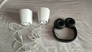 Pack de auriculares Philips negros y altavoces blancos. - Auriculares Philips negros. - Altavoces blancos.