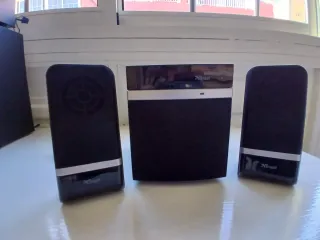 Sistema de altavoces 2.1 Trust en buen estado. Incluye subwoofer y dos altavoces satélite. - Perfecto para ordenador. - Conexión sencilla mediante jack.
