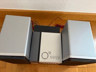Equipo de sonido Philips en buen estado. Incluye dos altavoces y una unidad principal. - Sistema de sonido envolvente. - Diseño elegante y compacto. - Perfecto para espacios pequeños.
