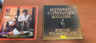 Conjunto de vinilos en perfecto estado. - Beethoven 9 Symphonien con la Filarmónica de Berlín dirigida por Herbert von Karajan. - Trumpet Concertos con Maurice André y la Orquesta Filarmónica de Berlín, bajo la dirección de Herbert von Karajan. - Incluye obras de Hummel, Vivaldi, Telemann y Leopold Mozart. Difíciles de encontrar y en perfecto estado. No escucho ofertas ridículas.