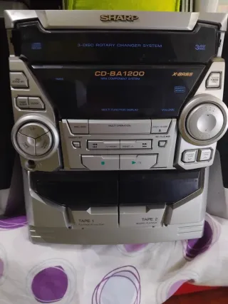 Mini cadena de música Sharp con reproductor de CD , doble pletina de cassette y bandeja de 3 CDs. - Pantalla multifunción. - Doble pletina para cintas. - Función X-BASS.