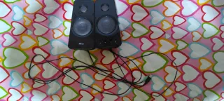 Altavoces compactos de la marca Trust en color negro. Ideales para complementar tu equipo. - Diseño moderno y elegante. - Sonido claro y nítido. - Conectividad USB. - Precio nuevo en Amazon 40€ aprox