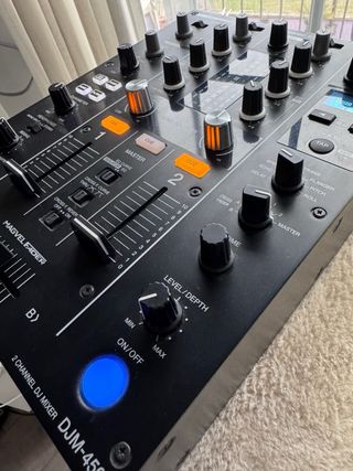 Vendo en super buen estado, se ha usado muy poco porque tambien tengo la flx10 y la uso como mixer. Solo gente seria y si te interesa te mando foto ;) Mezclador DJ de 2 canales Pioneer DJ DJM-450 en color negro. Diseñado para DJs que buscan calidad y control. Entradas Line / Phono por line - Ecualizador de 3 bandas por canal. - Efectos Sound Color FX y Beat FX. - Crossfader Magvel. - Conexiones USB y de audio versátiles. Entrada micro Auxiliar Salida sonido Canon y Rca Alphatheta Allen Heath Ecler Djm Xdj Cdj Rmx cabina Dj Home Profesional