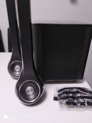 Subwoofer Creative en buen estado. Incluye un subwoofer y dos altavoces. -Sonido nítido y potente. -Diseño elegante y compacto. -Perfecto para escritorio.