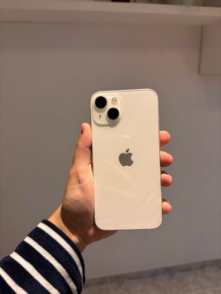 Teléfono móvil iPhone 13 en color blanco. - Diseño elegante y moderno. - Cámara dual en la parte trasera. - Funciona perfectamente