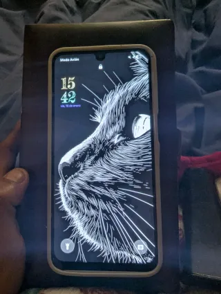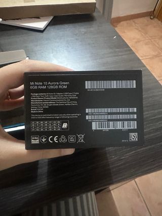 Teléfono móvil Xiaomi Mi Note 10 con su caja original. - Pantalla con logo de Xiaomi y Android. - Caja con diseño Note 10 y logo de Xiaomi.