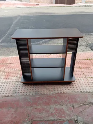 Mesa auxiliar de diseño moderno, ideal para colocar tu televisión y otros aparatos electrónicos. Ancho88 fondo37 alto80 - Estructura de melamina negra. - Dos baldas interiores. - Laterales con diseño de lamas.