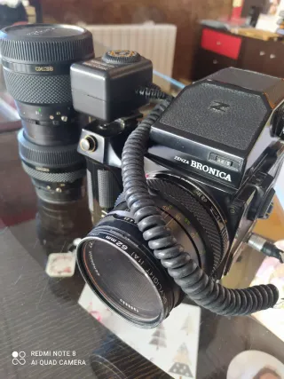 Cámara fotográfica Zenza Bronica etrsi con todas las ópticas, pentaprisma con fotómetro,motor, sca dedicado, dos chasis,etc