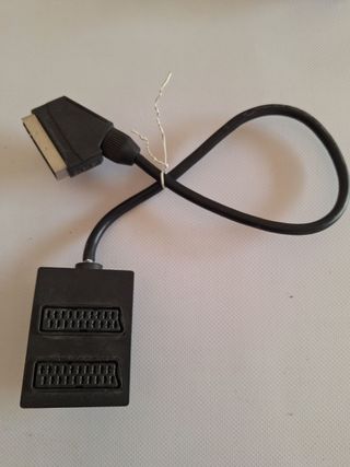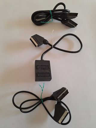 Conjunto de adaptadores de Euroconector SCART. - Un adaptador sencillo. - Un adaptador doble (splitter). - Conectores SCART negros.