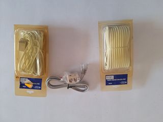 Cable telefónico con dos conectores hembra. Cable teléfono doblehembra, 12 metros, útil para teléfono, fax, módem..., marca AXIL. Uno sin abrir, nuevo, otro abierto