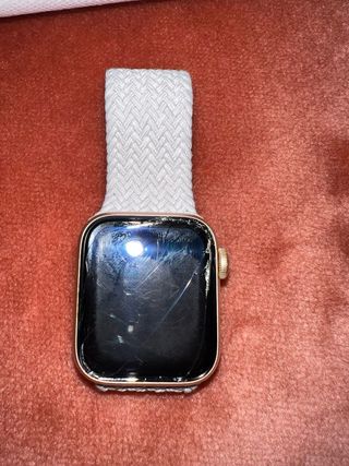 Reloj inteligente Apple Watch con caja de aluminio en color rosa. La pantalla se ha roto, de ahí su precio, pero funciona perfectamente. Se incluye caja y cargador original. - Tamaño de caja de 41 mm. - Modelo celular.