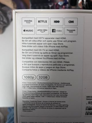 Se vende Apple TV con todos sus accesorios originales. No incluye cable HDMI. 1080p y 32 gb Año 2017 - Incluye el dispositivo Apple TV. - Mando a distancia. - Cable de alimentación.