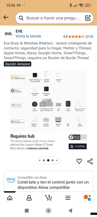 Sensor inteligente de contacto y seguridad para el hogar. - Compatible con Matter y Thread. - Funciona con Apple Home, Alexa, Google Home y SmartThings. - Requiere un Router de Borde Thread.