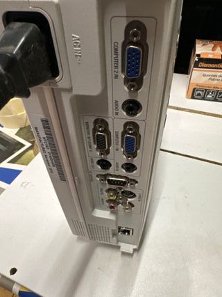 Proyector NEC NP216 en color gris y blanco. - Indicador de HOT con símbolo de no tocar. - Indicador de No! con símbolo de no abrir.