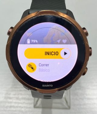 Elegante smartwatch Suunto 7 con un distintivo acabado en cobre y detalles en gris. - Bisel de color cobre. - Correa de color gris. - Esfera con diseño moderno. - Sistema operativo Wear - GPS, Monitor de frecuencia cardíaca, Monitor de sueño, Rastreador multideporte. - Aplicaciones compatibles - GPS - Caja de 50 mm con botones y pantalla Táctil Amoled - Reloj inteligente para android o IOS. Se ve como nuevo con su embalaje original y toda la documentación, incluida factura de compra por 429 euros.