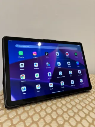 Tablet Lenovo en color negro y gris, incluye funda protectora, lápiz y cargador completamente nuevo. Tiene muy poco uso y funciona a la perfección.