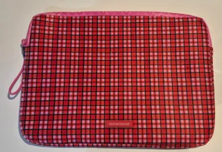 Funda para portátil de 13 pulgadas con un divertido diseño de Smiley World. - Estampado a cuadros en tonos rojos y rosas. - Cierre de cremallera. - Incluye asa para facilitar su transporte. Es de Woman Secret (no es de la marca Klin, es que sino elegia una no podía grabarlo) . Practicamente nueva