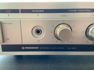 Amplificador integrado Pioneer SA-301. Funcionamiento perfecto. Recién revisado y limpiado. País: Japón Salida de potencia: 32 vatios por canal (estéreo) Respuesta de frecuencia: 10H a 60KH Distorsión armónica total: 1% Relación señal-ruido: 72 dB (MM), 97 dB (línea) Impedancia de carga del altavoz: 8 Ohm a 16 Ohm Dimensiones: 420 x 98 x 234 mm