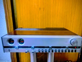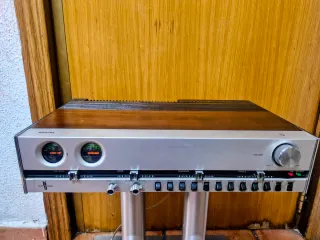 Precio válido hasta final de año Potencia de salida: 110 vatios por canal a 8 Ω (estéreo) Respuesta de frecuencia: 7 Hz a 40 kHz Distorsión armónica total: 0,05% Factor de amortiguación: 30 Sensibilidad de entrada: 6 mV (micrófono), 2,5 mV (MM), 150 mV (línea) Relación señal/ruido: 65 dB (micrófono), 70 dB (MM), 95 dB (línea) Salida: 150 mV (línea), 2 V (salida previa) Impedancia de carga del altavoz: 4 Ω a 16 Ω Semiconductores: 10 x FET, 74 x transistores, 33 x diodos Dimensiones: 420 x 165 x 403 mm Peso: 20 kg Accesorios: llave hexagonal Año: 1976
