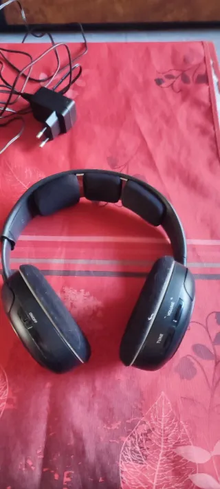 Cascos inalámbricos para disfrutar de tu contenido multimedia sin cables. Ideales para personas que tiene problemas auditivos y molestan a vecinos con el volumen de la TV - Diseño ergonómico. - Base de carga incluida. - Adaptador de corriente. - Conexión de audio.