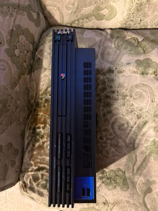 Consola PlayStation 2 en color azul marino. - Diseño elegante y minimalista. - Logotipo de PS2 y PlayStation 2 en la parte frontal. Viene con dos juegos y dos Memory Card oficial de 8 MB. SIN CAJA❗️❗️❗️ Precio negociable.