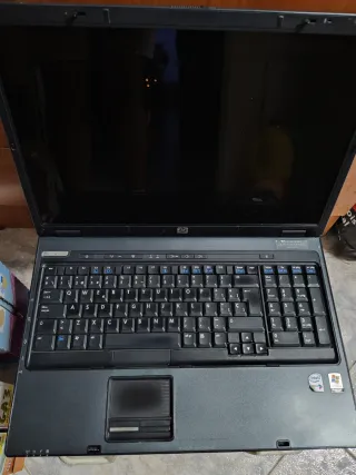 Portátil HP Compaq nx9420 en color negro y gris. Para piezas, ahora que se ha quitado sin disco duro ni ram no enciende, pero antes tampoco daba imagen. No hay devolución