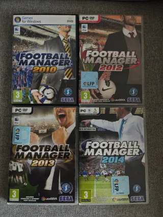 Pack de 4 DVDs de los juegos de gestión deportiva Football Manager. - Football Manager 2010 - Football Manager 2012 - Football Manager 2013 - Football Manager 2014