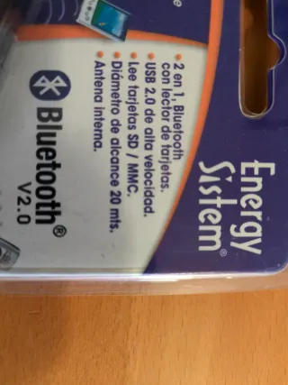 Adaptador 2 en 1 que funciona como dongle Bluetooth y lector de tarjetas SD/MMC. Incluye una tarjeta de memoria de 2 GB. - Bluetooth V2.0. - USB 2.0 de alta velocidad. - Diámetro de cobertura de hasta 20 metros. - Antena interna.