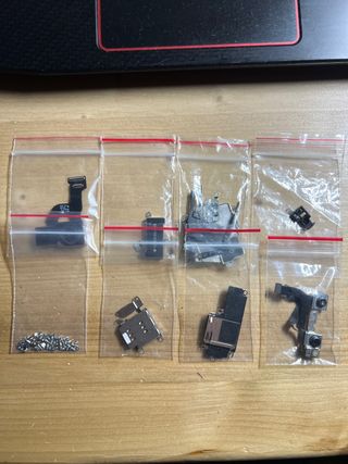 Lote de repuestos para iPhone 12. - Flex de carga - Bandeja SIM - Cámara trasera ( Vendida ) - Altavoz - Tornillos