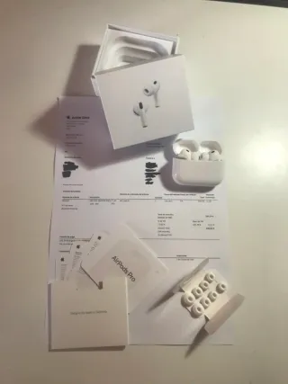 Auriculares inalámbricos AirPods Pro 3 de marca Apple. Se venden con su caja original y accesorios. - Incluye estuche de carga. - Incluye almohadillas de repuesto de diferentes tamaños. -Equipados con tecnología ANC avanzada