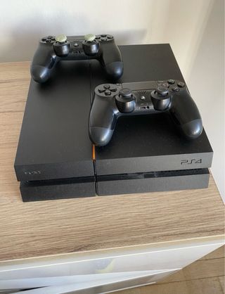 Consola PlayStation 4 en color negro, lista para disfrutar. - Incluye dos mandos DualShock 4. - En perfecto estado. - 2 juegos - Conservo caja original.