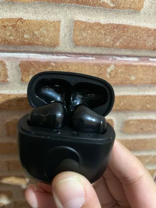 Auriculares inalámbricos pequeños con un diseño moderno. - Caja de descarga transparente. - Cable de carga incluido - La batería dura depende del uso 3 horas y con el estuche 9 horas. - Se escucha bien pero son de plástico barato.