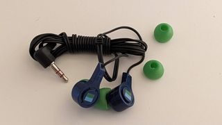 Auriculares azules y blancos