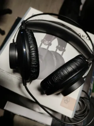 Auriculares AKG K44 en color negro. Diseño ligero y cómodo. - Diadema ajustable. - Almohadillas acolchadas. Están como nuevos. Los usé un par de veces para una grabación y no han salido de casa. Conservo la caja original.