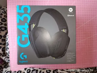 Logitech G435 LIGHTSPEED wireless gaming headset. micrófono, bluetooth. Para PC, play... Certificado por discord. Ver especificaciones en las fotos. Están NUEVOS. La caja se abrió para comprobar que funcionaban (se probó la carga, audio, teclas y conectividad), por eso se ve el pegamento en los cierres.(Se abren por arriba para ver las instrucciones). Fue un regalo que había otro parecido algo mejor. Se aceptan ofertas razonables.