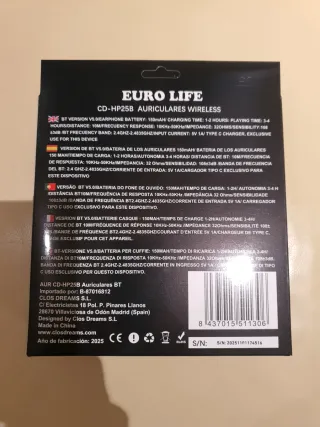 Auriculares inalámbricos EURO LIFE con tecnología Bluetooth 5.0. Diseño moderno y cómodo. - Conexión inalámbrica. - Ideal para música. - Permite realizar llamadas. - Batería recargable. Está sin abrir. En su caja original En tienda suele costar de 10-12€