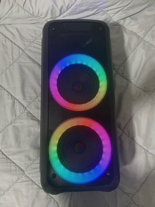 Altavoz Avenzo con un diseño moderno y llamativo. - Diseño vertical. - Iluminación LED RGB. - Dos altavoces frontales. -Bluetooth -250 W (Incluye mando a distancia)