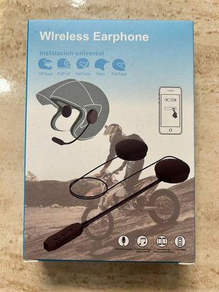 Auriculares inalámbricos Bluetooth diseñados para cascos de moto. Permiten escuchar música y atender llamadas. - Instalación universal para diferentes tipos de cascos: Off Road, Flip Up, Half Face, Retro y Full Face. - Micrófono incluido. - Transmite tu música directamente al casco. - Compatible con dispositivos iPhone y Android. - Batería de litio.