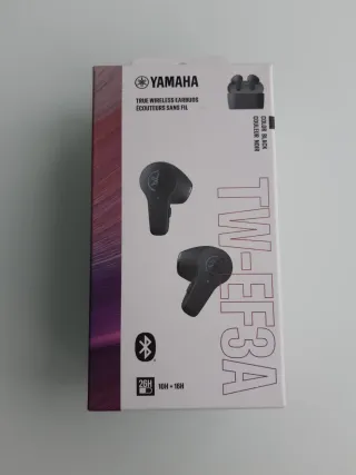 Auriculares inalámbricos Yamaha TW-EF3A. Los vendo porque iba a ser un regalo que nunca lo acabamos de entregar y se nos pasó la fecha de cambiarlos por otra cosa. Me imagino que estarán en garantía, se entrega ticket de El Corte Inglés. Están nuevos. - Tecnología True Wireless. - Autonomía de hasta 26 horas con el estuche de carga (10h + 16h). - Conectividad Bluetooth.