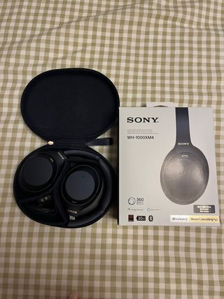 Auriculares inalámbricos Sony WH-1000XM4 en color azul marino. Incluyen su estuche de transporte y caja original. Los vendo por poco uso. Comprado en octubre de 2025. - Tecnología de cancelación de ruido. - Conectividad Bluetooth. - Hasta 30 horas de autonomía.