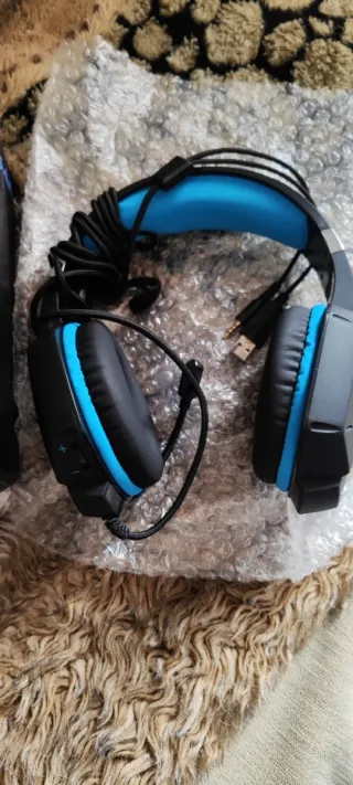 Auriculares Yinsan modelo TM-5 con un diseño moderno y llamativo. - Diadema ajustable. - Almohadillas cómodas. - Micrófono integrado. Nunca se han usado ya que el conector de la Nintendo estaba estropeado y tuvimos que comprar bluetooth, tengo la caja pero está un poco rota.